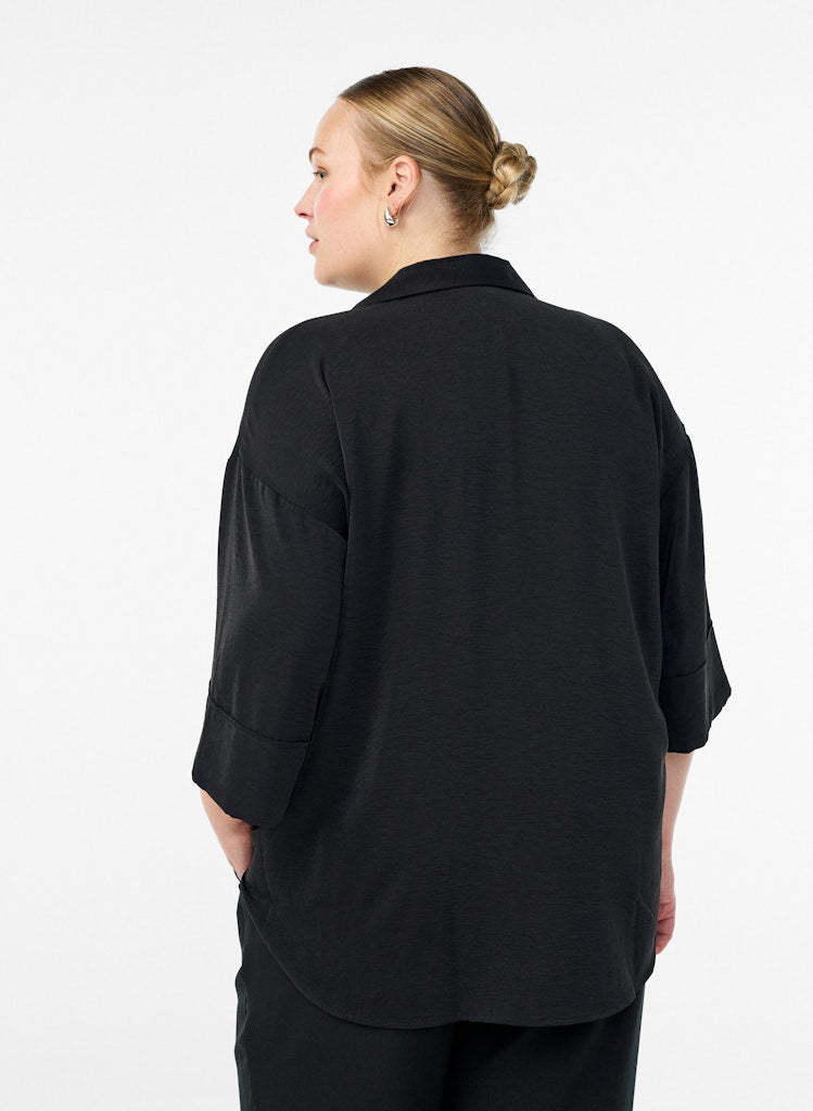 Laus og fínleg svört kvarterma skyrta frá danska merkinu Zizzi.
