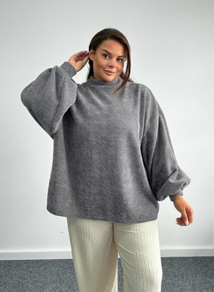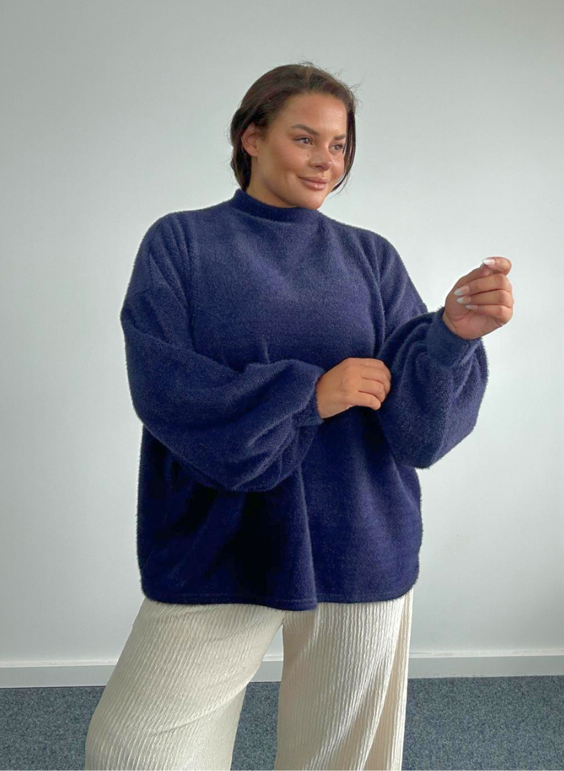 Frábær oversize kósý peysa úr mjúku aðeins loðnu efni sem þú átt eftir að elska!!