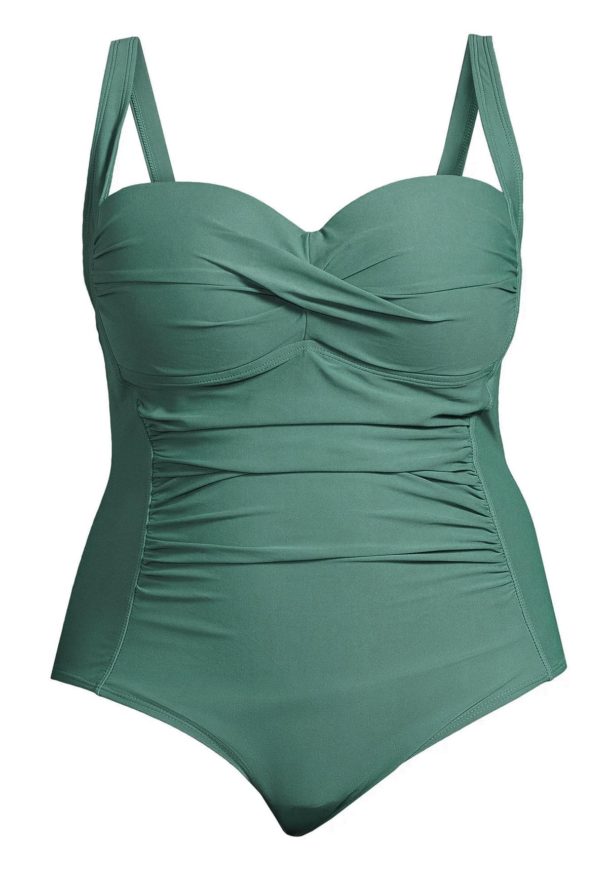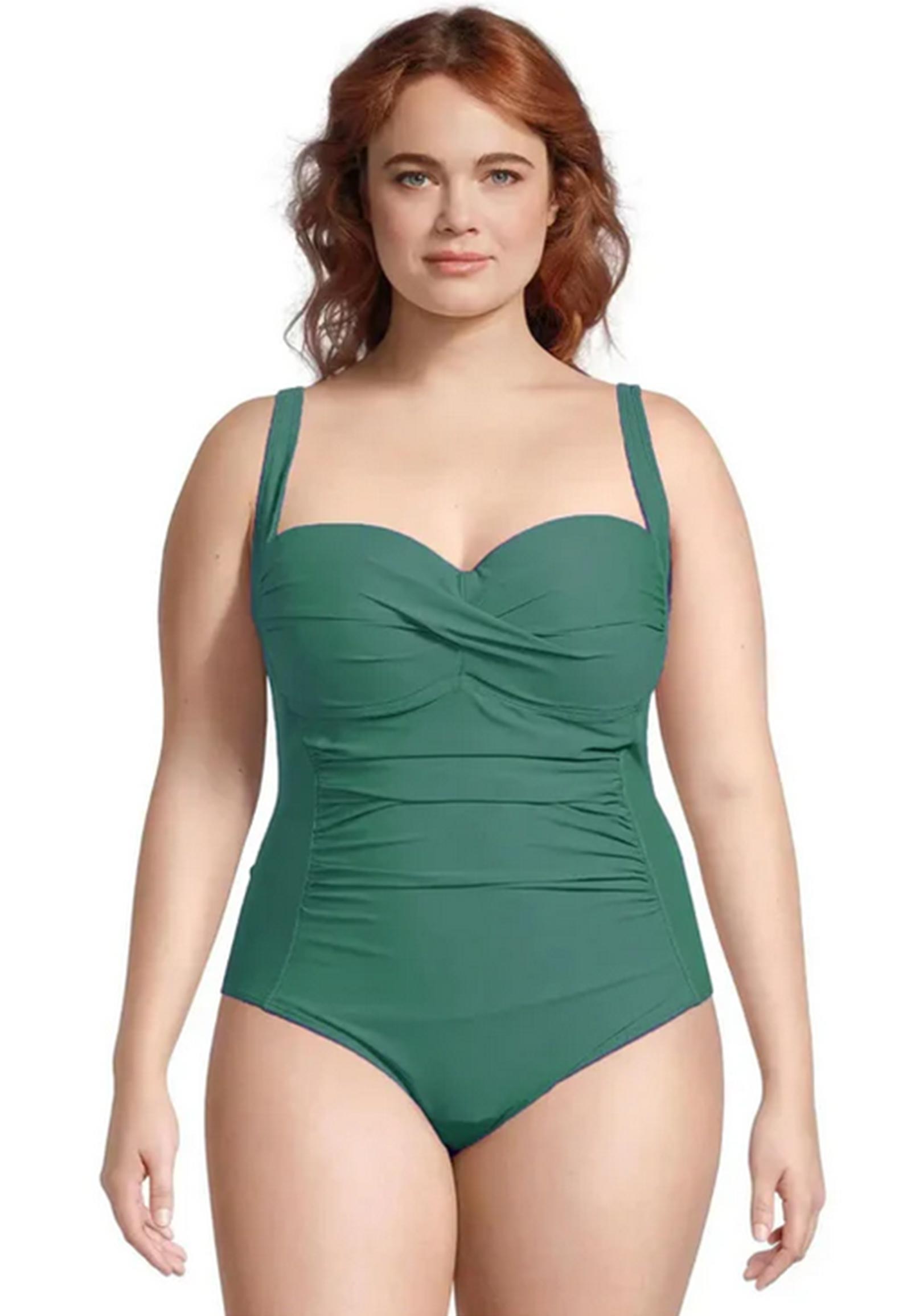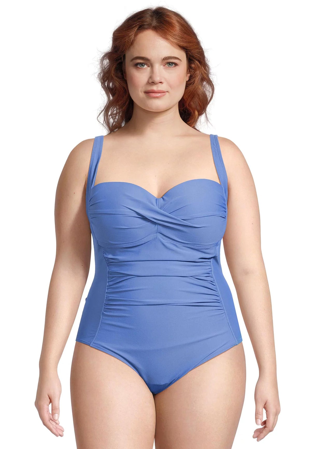 Aðhalds-sundbolur með klæðilegum rykkingum yfir magasvæðið.