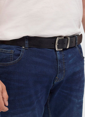 Vandað og sterkt 100% leður belti með rúnnuðum kanti og stál sylgju.