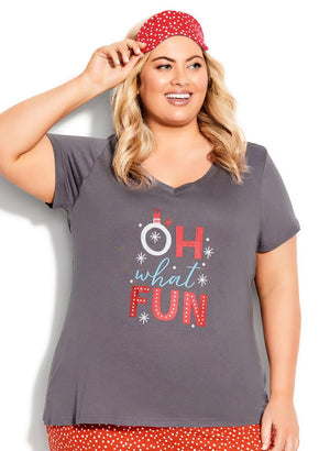 Bolurinn er víður og kósý - fullkomið að nota sem náttbol við Fun Red náttbuxurnar sem eru einnig fáanlegar í Curvy.