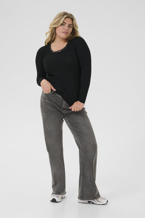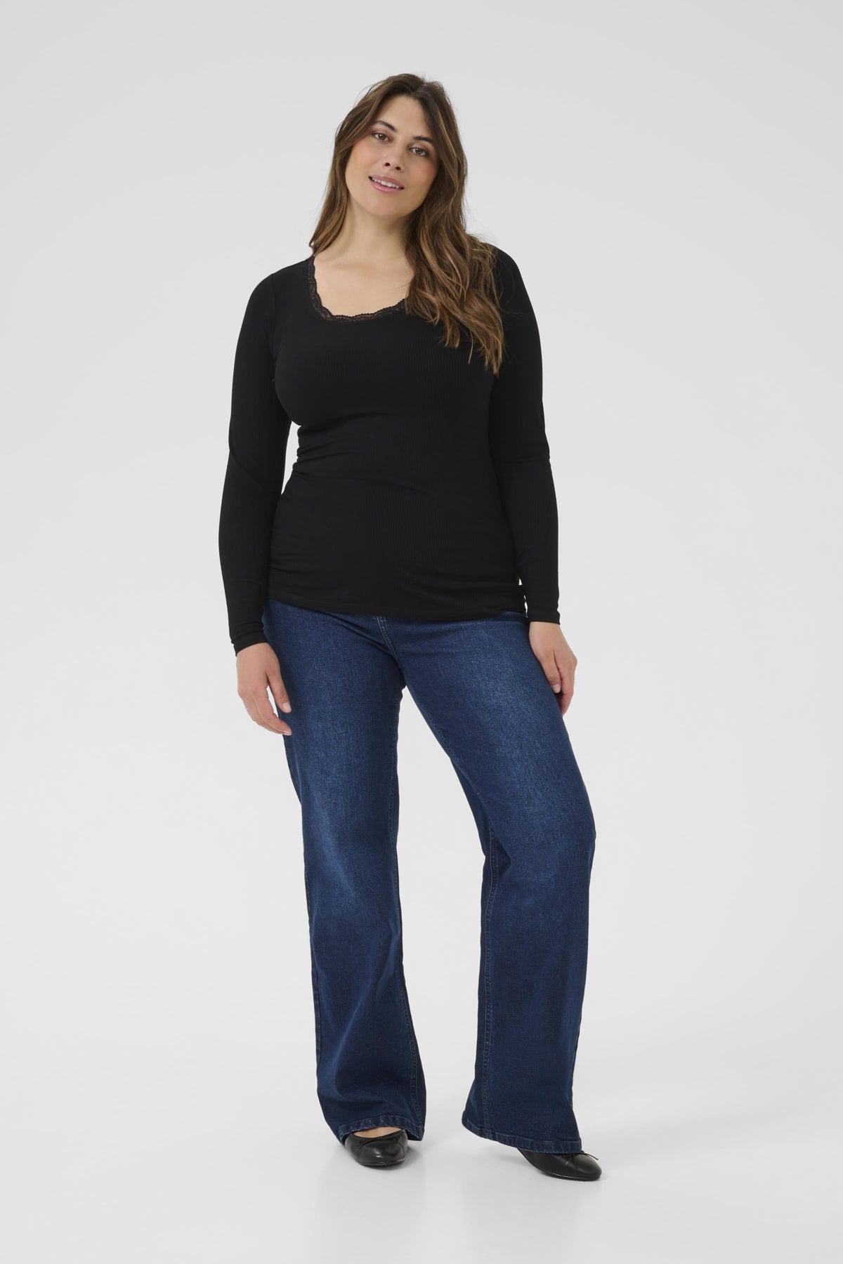 Klassískir síðerma bolir með blúndu frá lúxusmerkinu Kaffe Curve.