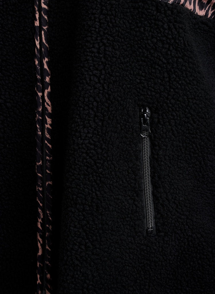Peysan er úr hlýju og mjúku 'Teddy' efni með vösum á hliðinni.