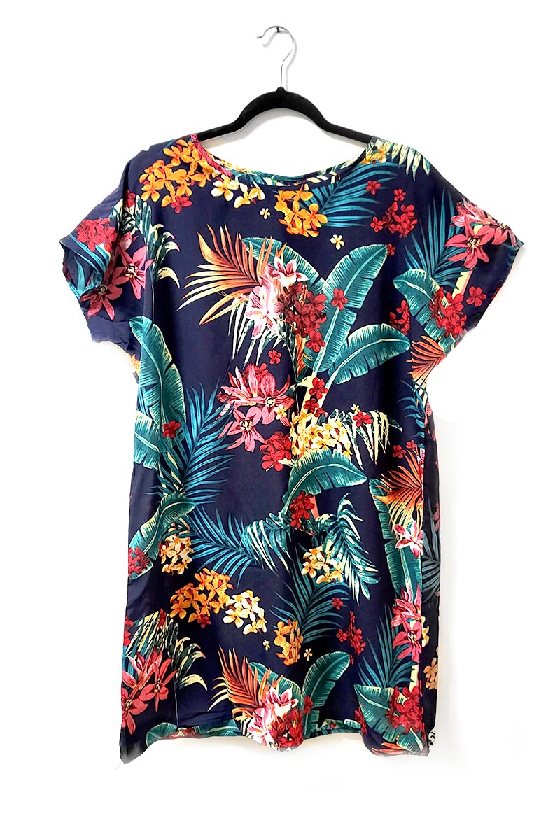Þunn og létt siffon túnika með stuttum ermum og litríku sumar mynstri.