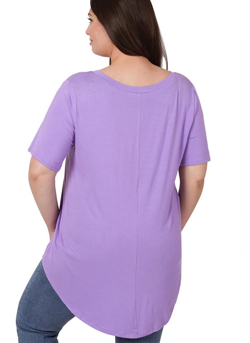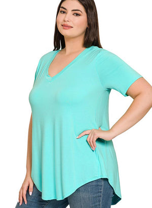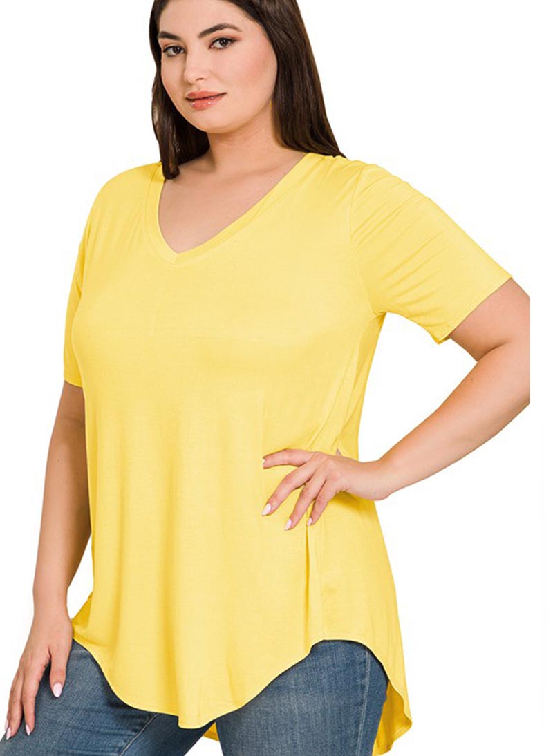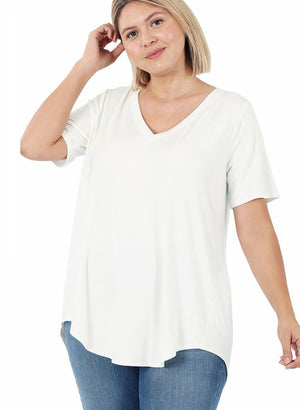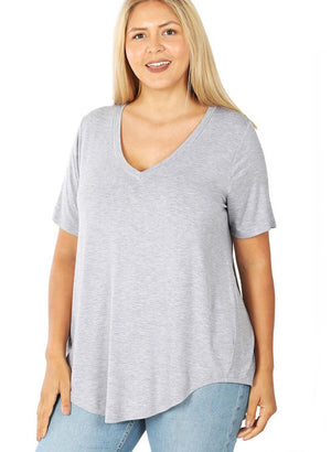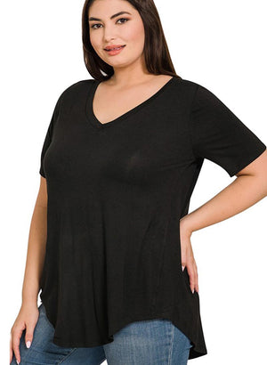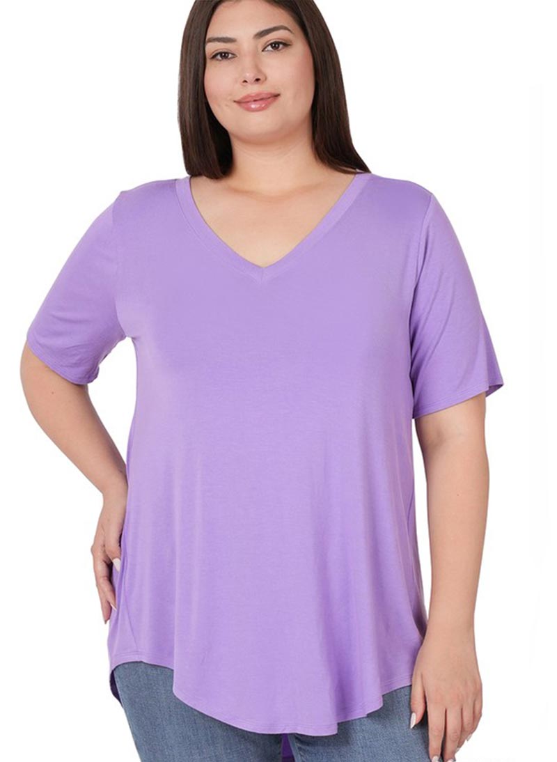 Basic stuttermabolur með V-hálsmáli og klæðilegu lausu A-sniði
