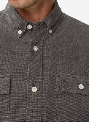 Skyrtan er hneppt alla leið niður og með tveimur vösum að framan.