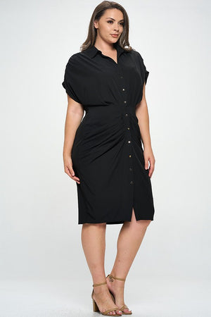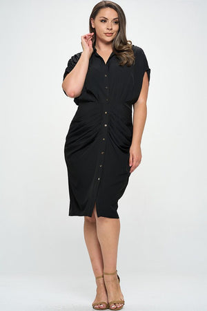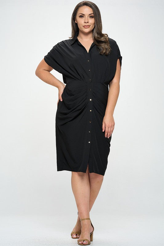 Plíseraður að framan og rykkingar við axlir gefa kjólnum skemmtilegt lúkk.
