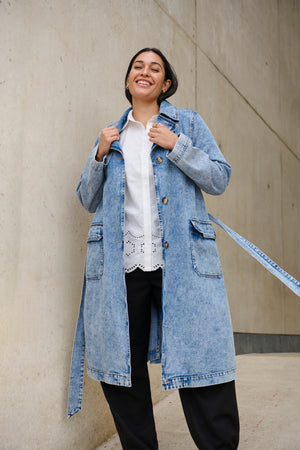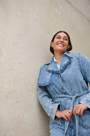 Geggjuð útgáfa af klassíska rykfrakkanum frá lúxusmerkinu Kaffe Curve.