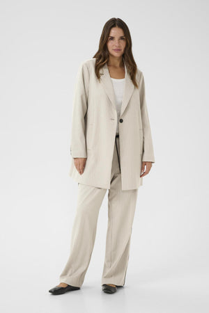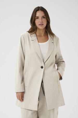 Fallegur ljós teinóttur blazer jakki frá KAffe Curve sem er í stíl við Sirana buxurnar.
