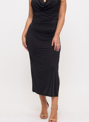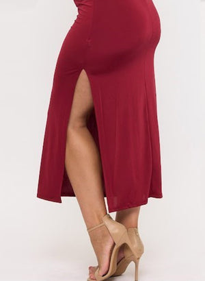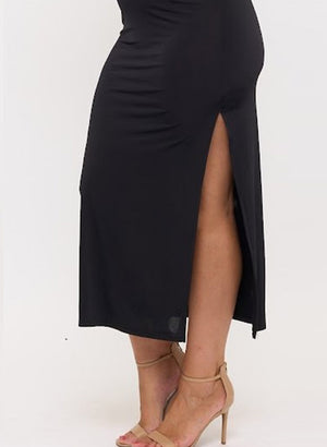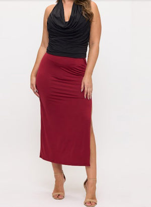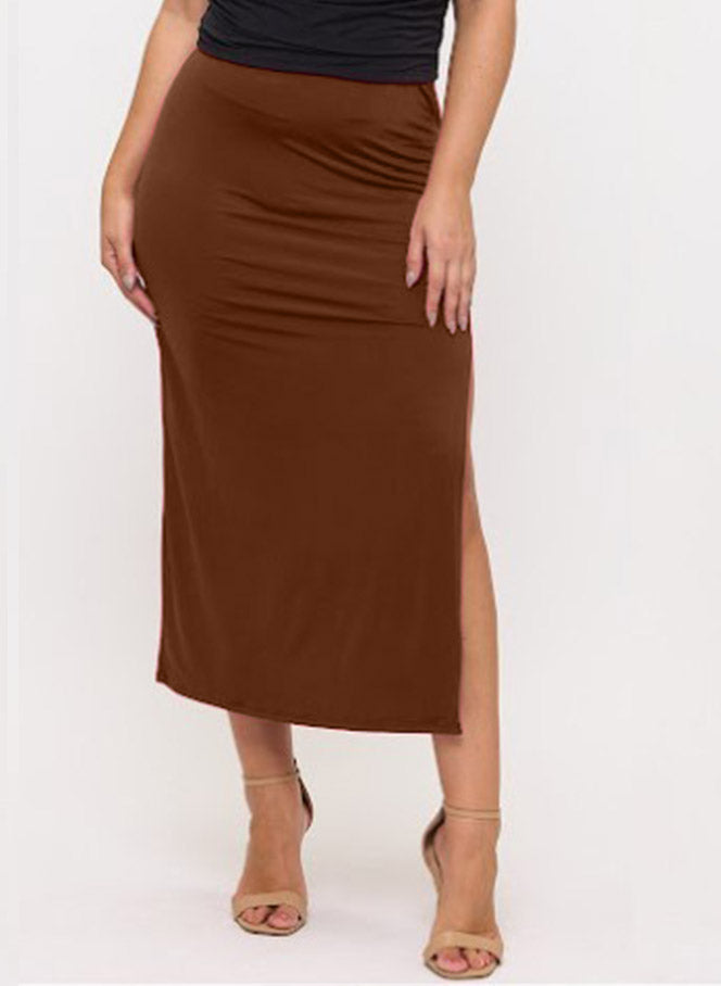 Einfalt millisítt teygjupils með háa klauf öðru megin.