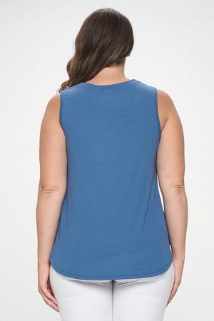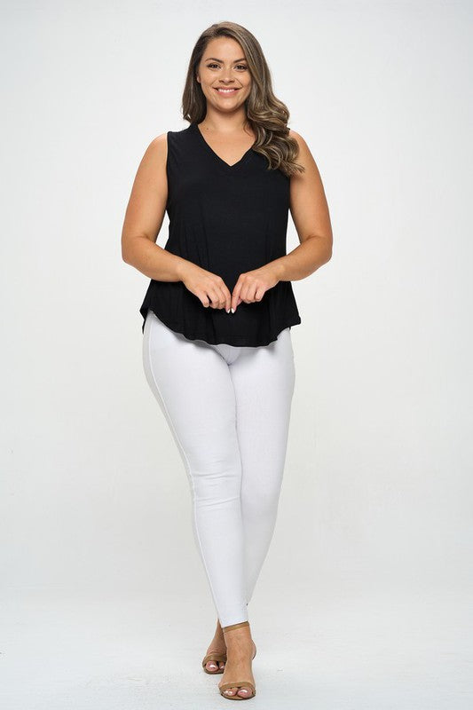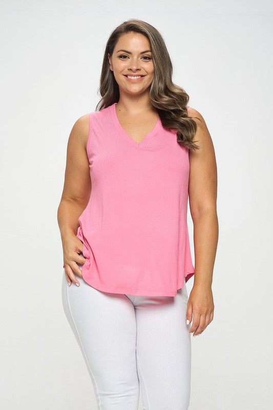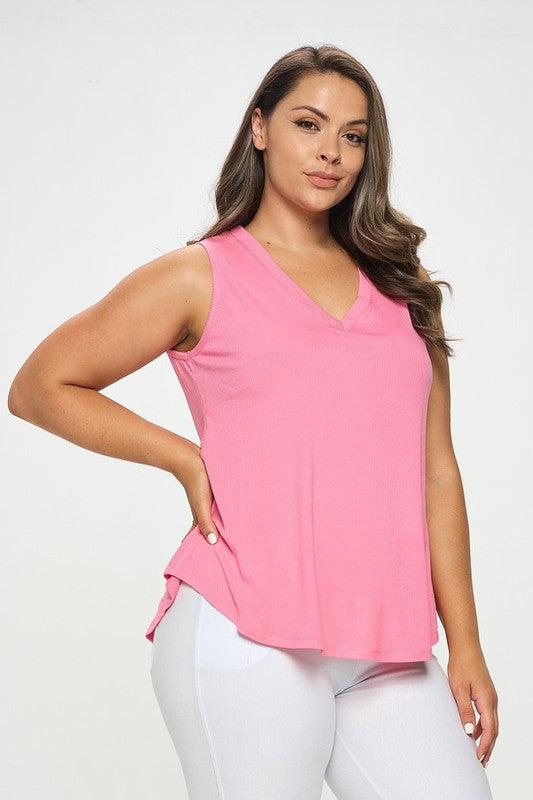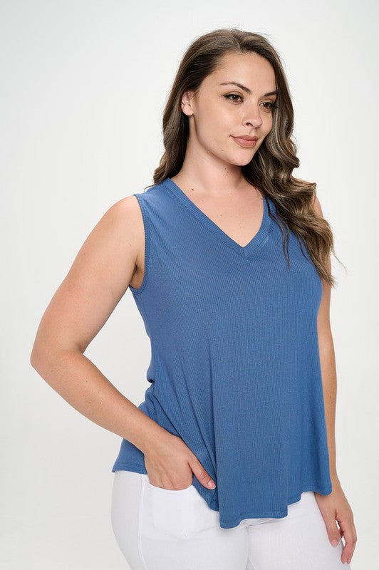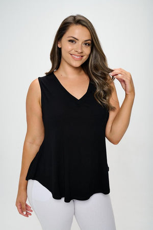 Dásamlega mjúkur ermalaus toppur með V-hálsmáli.