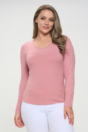 Þægilegur hversdags langerma bolur úr viscose blöndu með teygjanlega rifflaðri áferð.