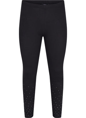 Flottar viscose leggings með skrautsteinum frá Zizzi.