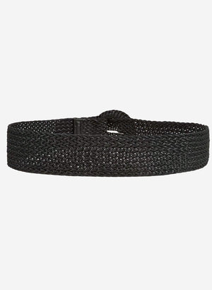 Fléttað fallegt belti með hálf hringlaga skrautsylgju að framan.