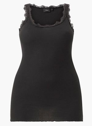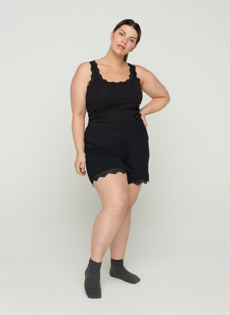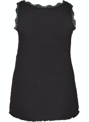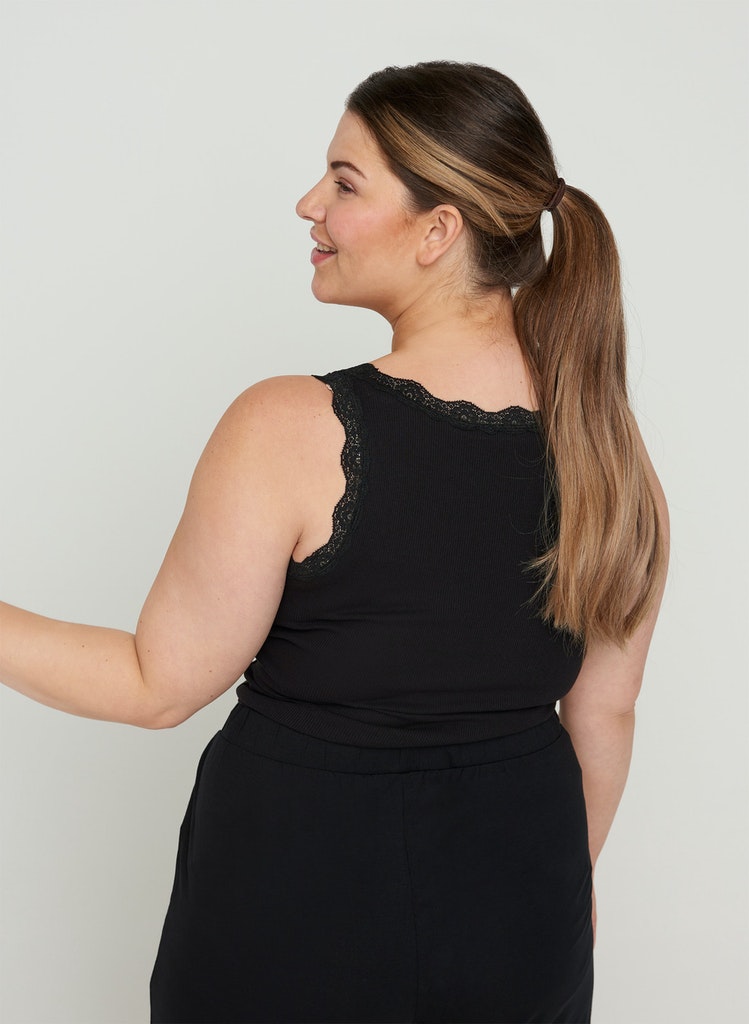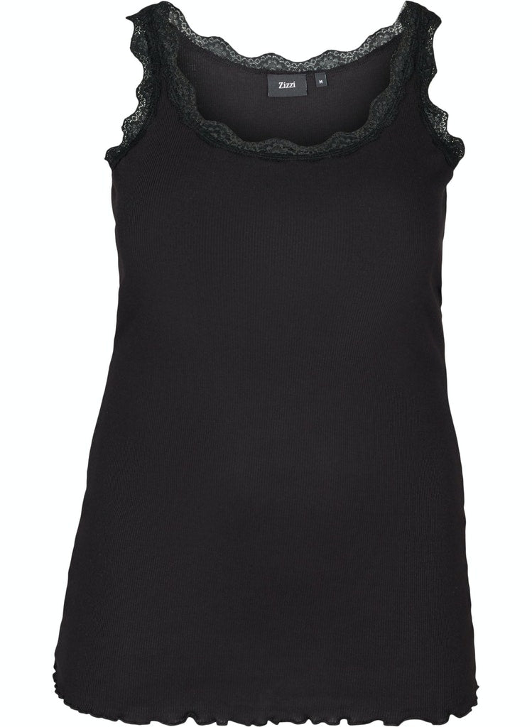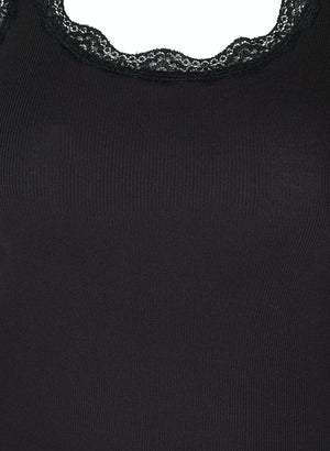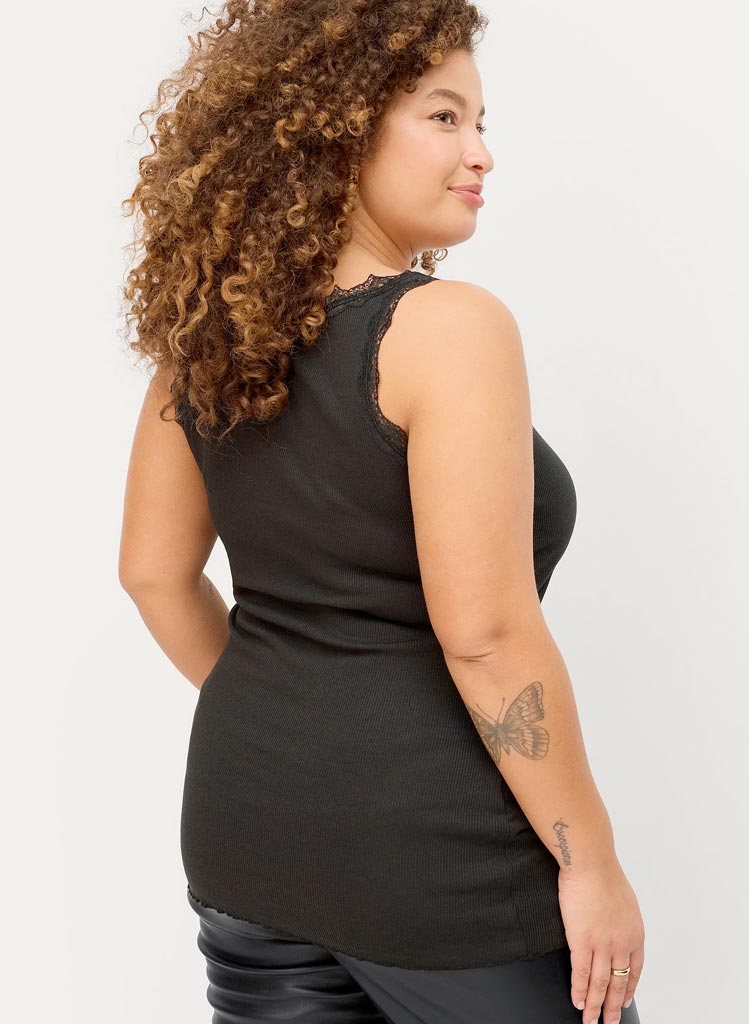 Fínleg blúnda við hálsmál og falleg riffluð áferð í efninu.