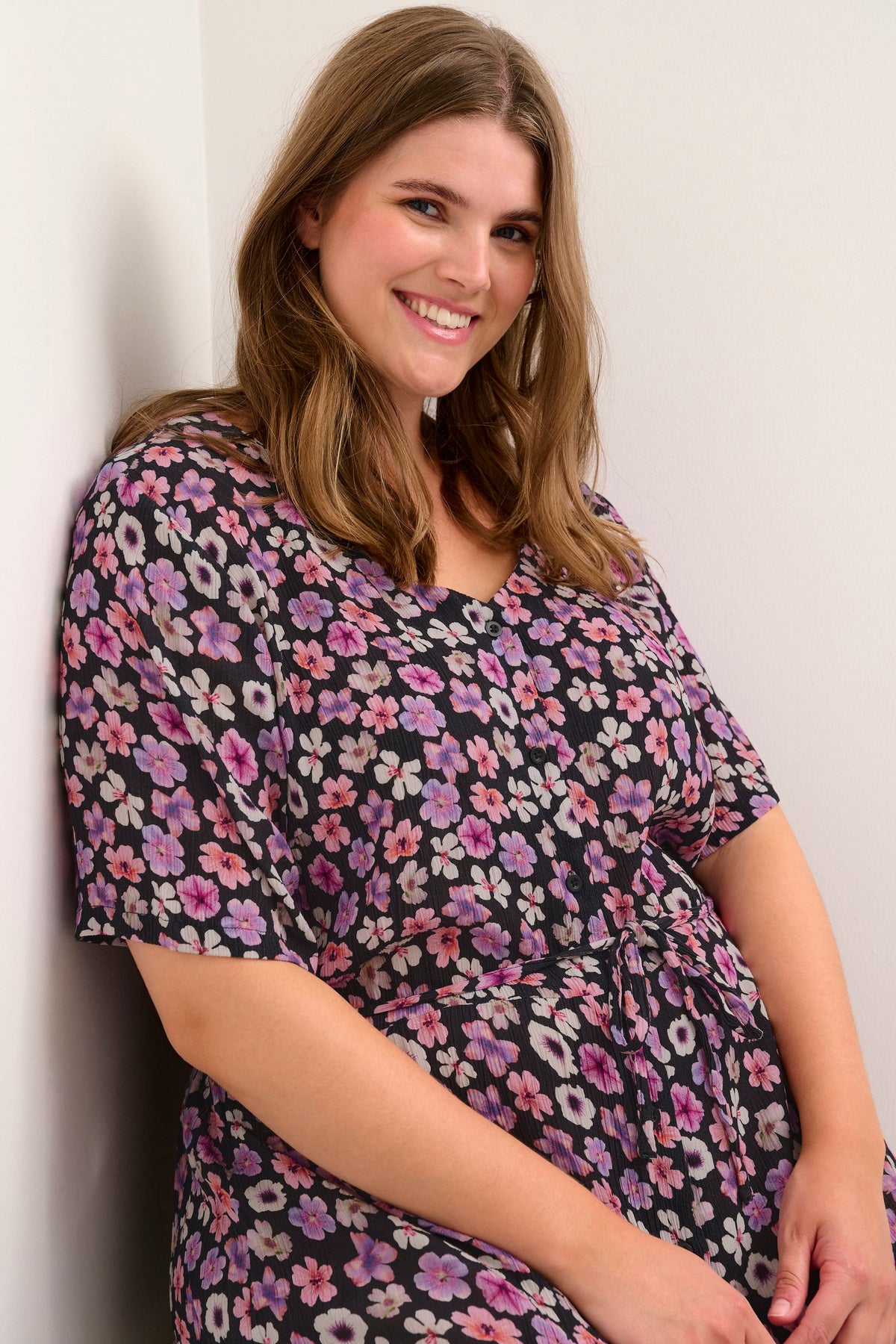 Léttur kjóll með blómamynstri frá Ami línu - Kaffe CURVE.