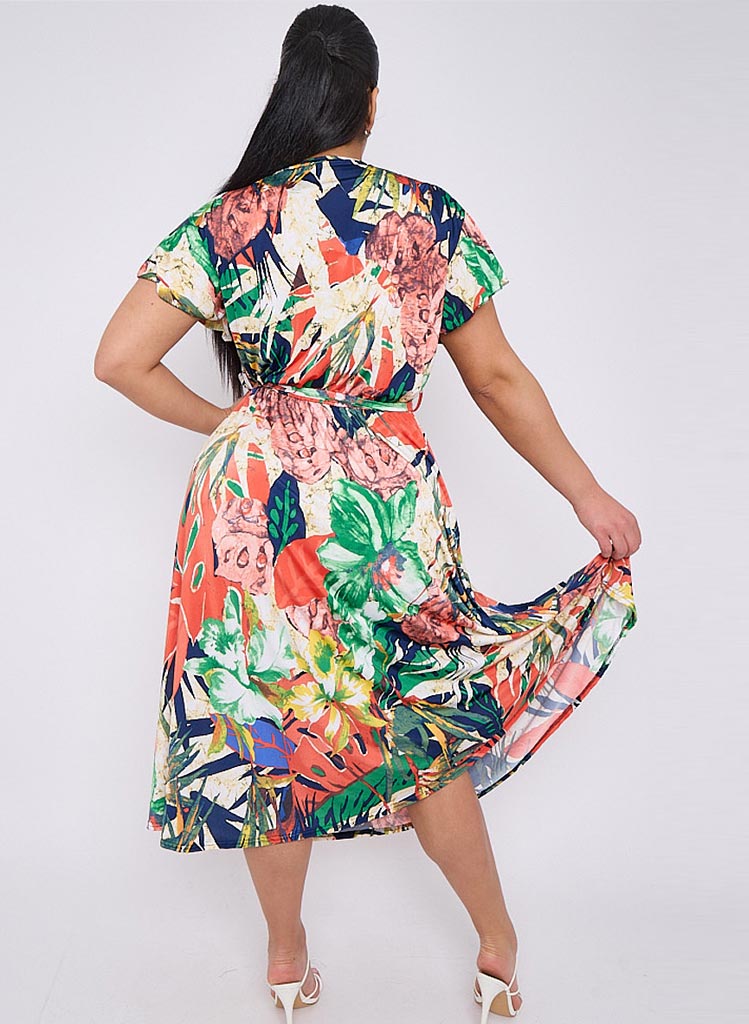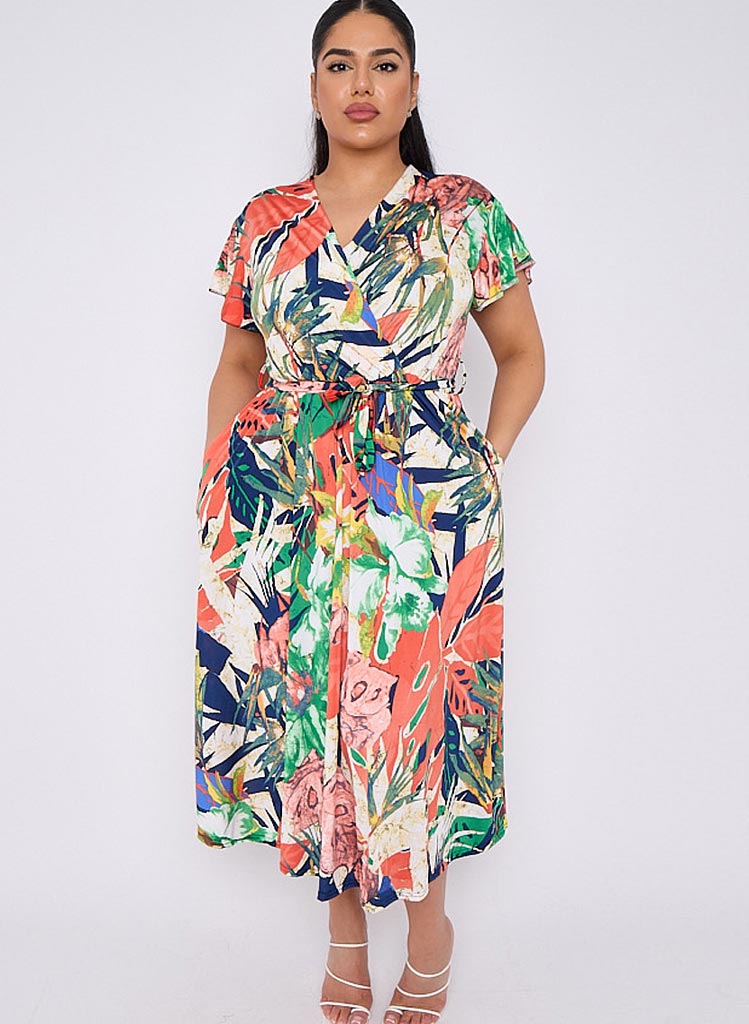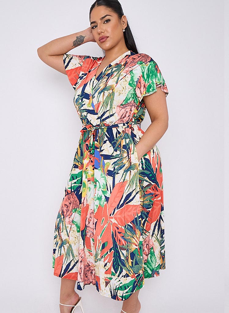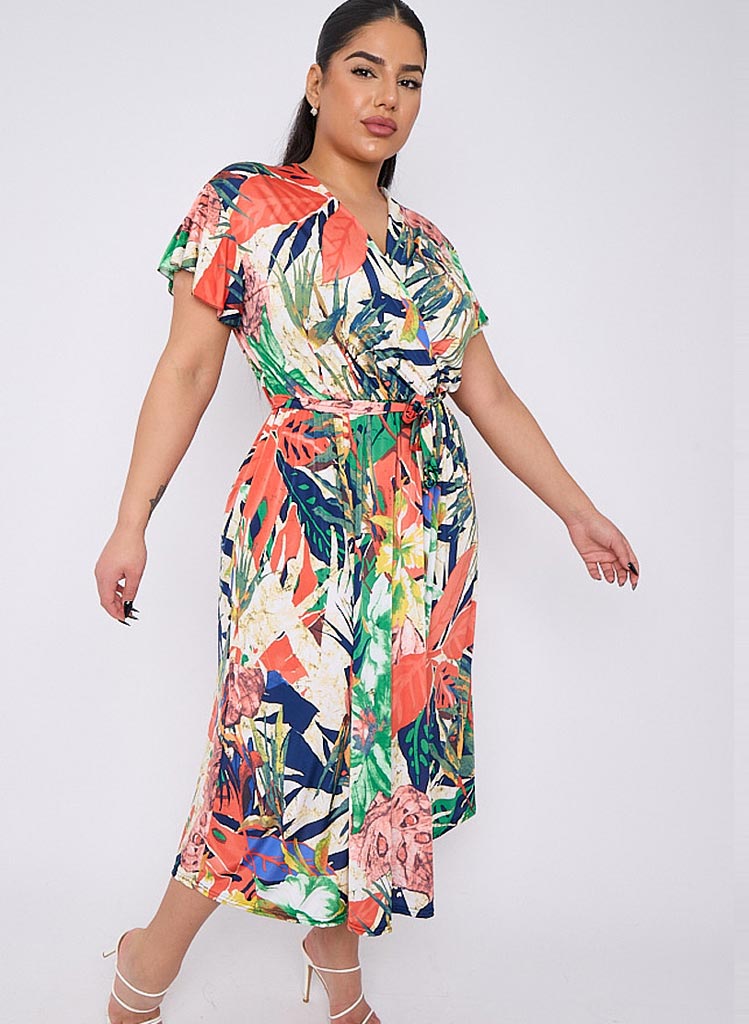 Wrap hálsmál, teygja í mittinu og mjög góð teygja í efninu.