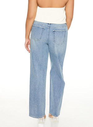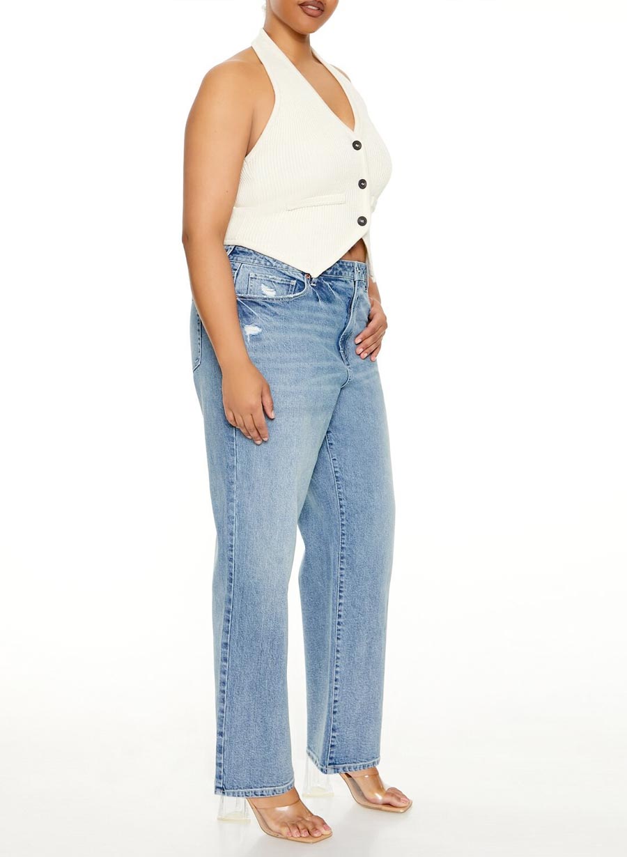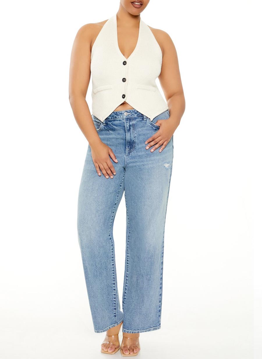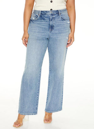 Extra háar uppí mittið með beinum, víðum og síðum skálmum.
