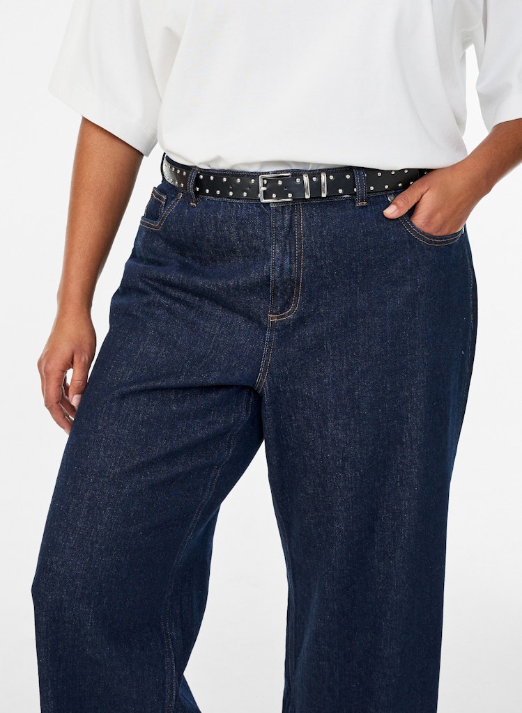 Klassískt svart leðurlíkis belti með silfruðum "studs" skrautskífum frá danska merkinu ZIZZI.