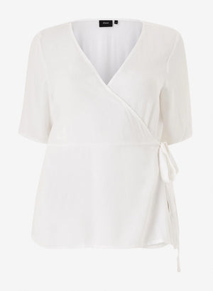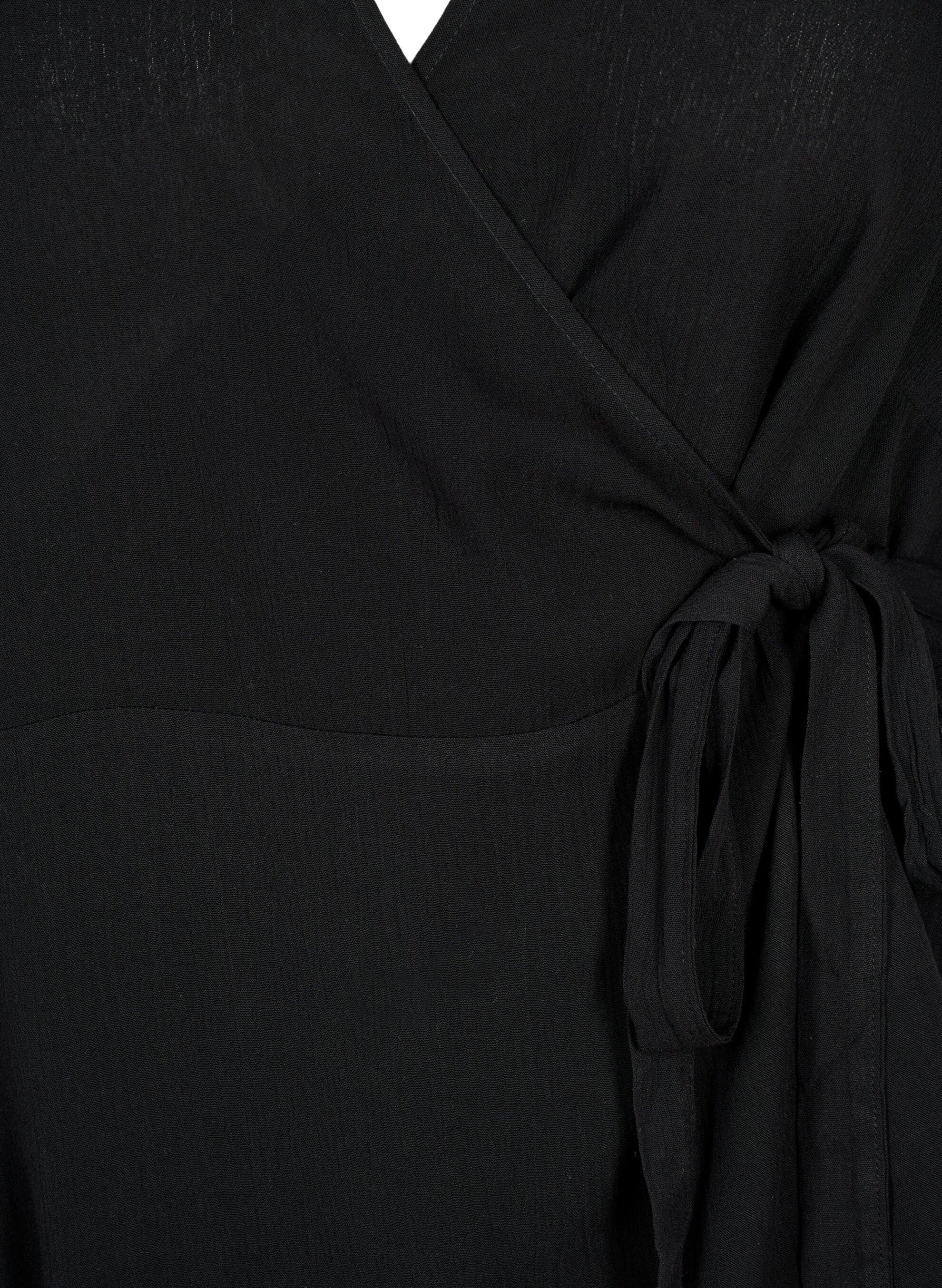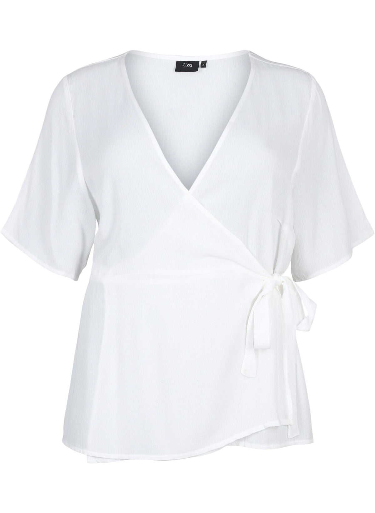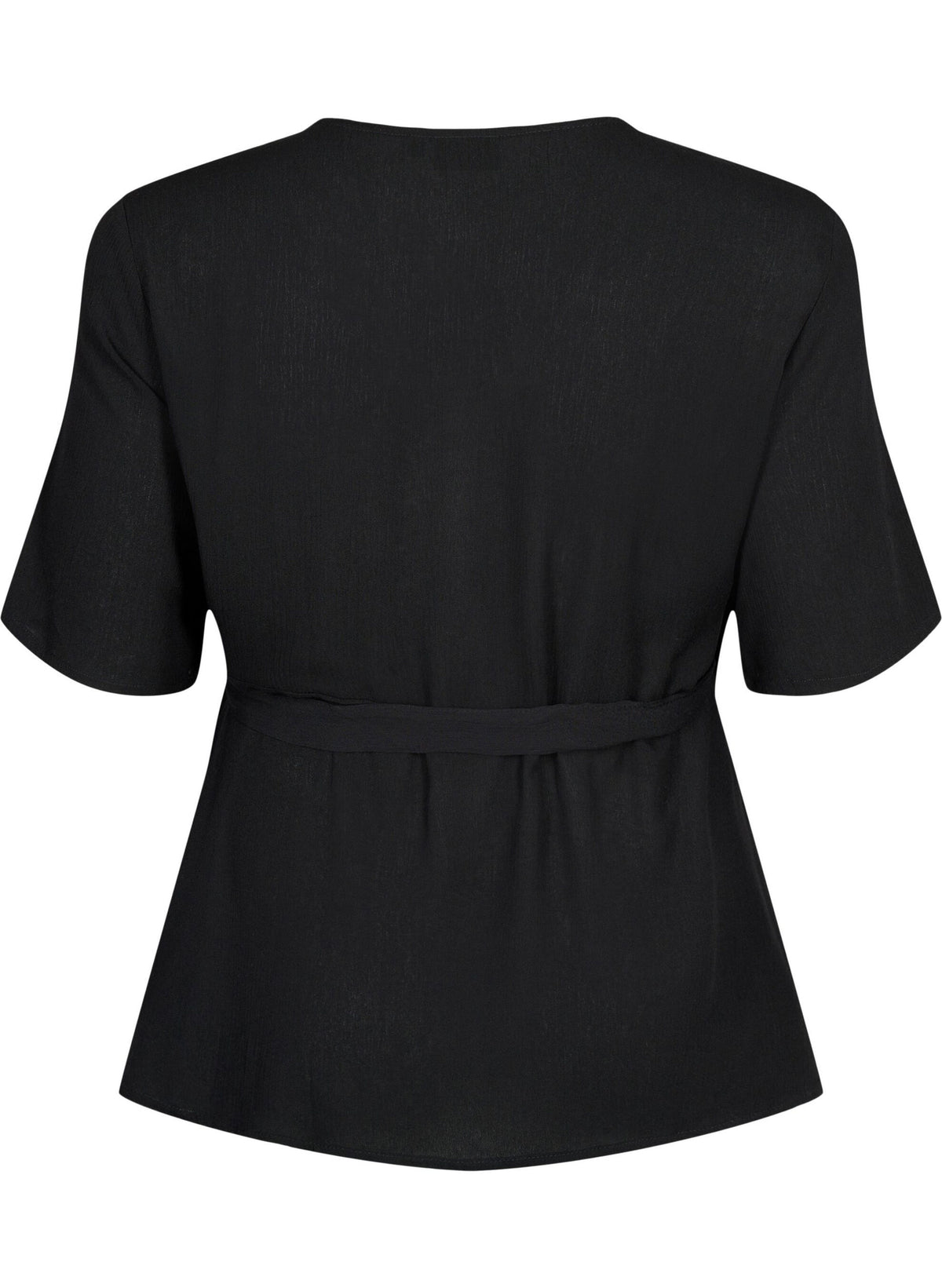 Wrap snið með bandi svo það er hægt að taka blússuna saman í mittinu.