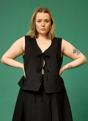 Skemmtilegt vesti úr blöndu af 90% polyester 8% hör og 2% elastine.