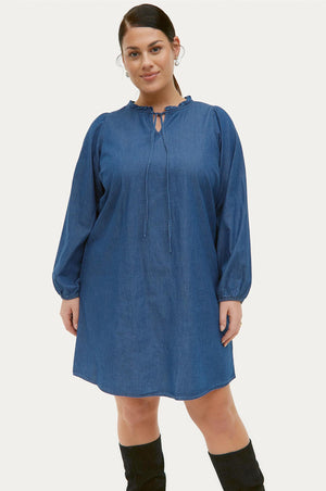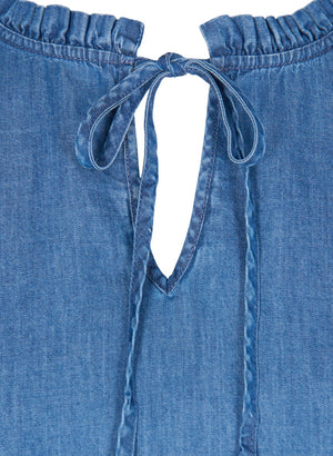 Band við hálsmál að framan, sætt að binda slaufu eða vera með opið.